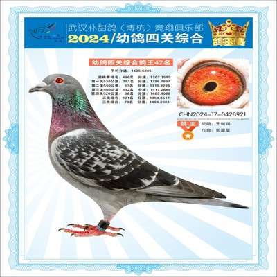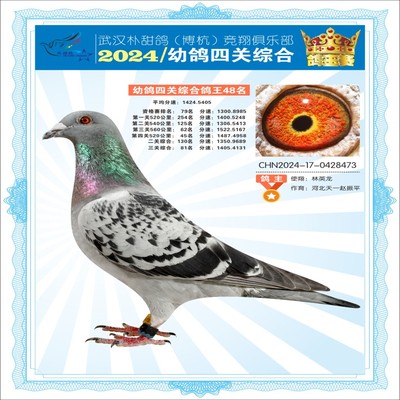 2024年武汉朴甜鸽[博杭]幼鸽四关综合鸽王47名