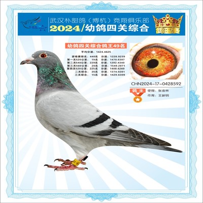2024年武汉朴甜鸽[博杭]幼鸽四关综合鸽王49名