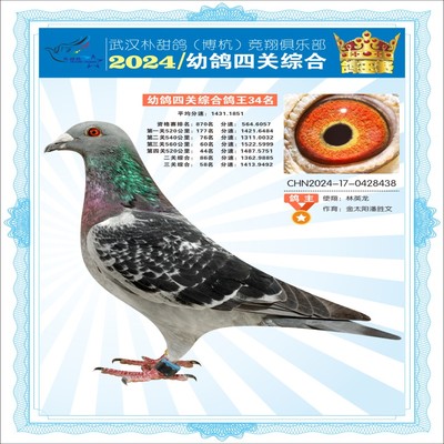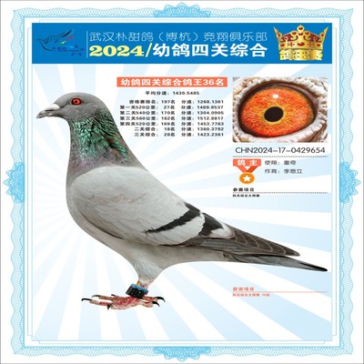 2024年武汉朴甜鸽[博杭]幼鸽四关综合鸽王34名