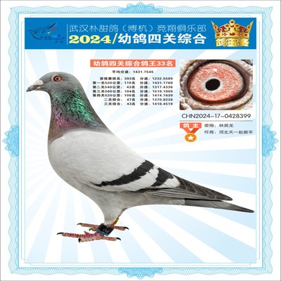 2024年武汉朴甜鸽[博杭]幼鸽四关综合鸽王33名