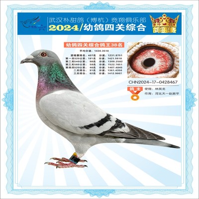 2024年武汉朴甜鸽[博杭]幼鸽四关综合鸽王38名