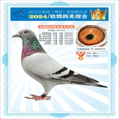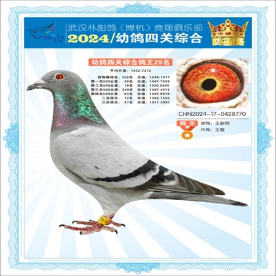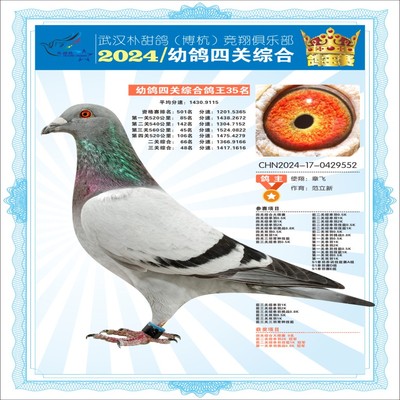 2024年武汉朴甜鸽[博杭]幼鸽四关综合鸽王29名