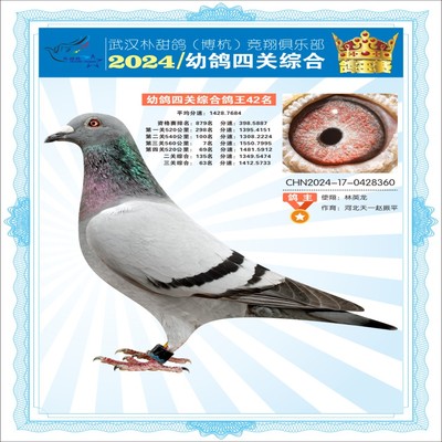 2024年武汉朴甜鸽[博杭]幼鸽四关综合鸽王42名