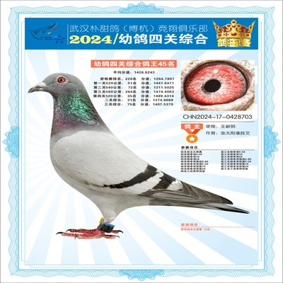 2024年武汉朴甜鸽[博杭]幼鸽四关综合鸽王44名
