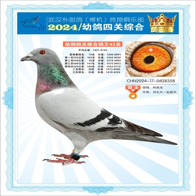 2024年武汉朴甜鸽[博杭]幼鸽四关综合鸽王43名