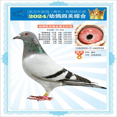 2024年武汉朴甜鸽[博杭]幼鸽四关综合鸽王62名