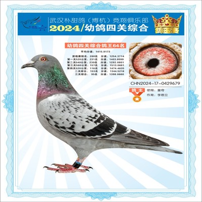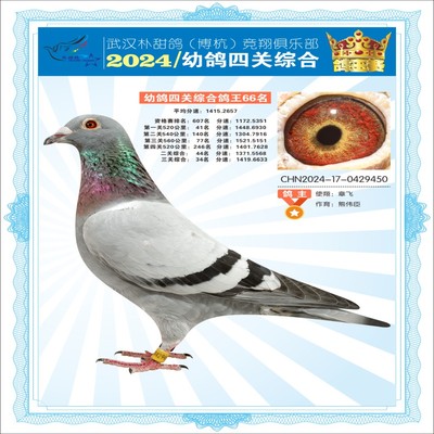 2024年武汉朴甜鸽[博杭]幼鸽四关综合鸽王64名