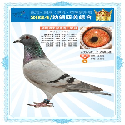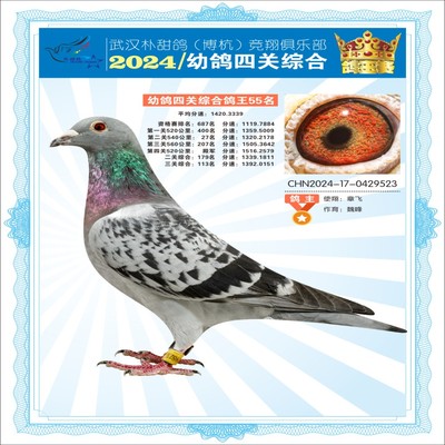 2024年武汉朴甜鸽[博杭]幼鸽四关综合鸽王55名