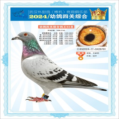 2024年武汉朴甜鸽[博杭]幼鸽四关综合鸽王93名