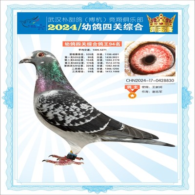 2024年武汉朴甜鸽[博杭]幼鸽四关综合鸽王94名