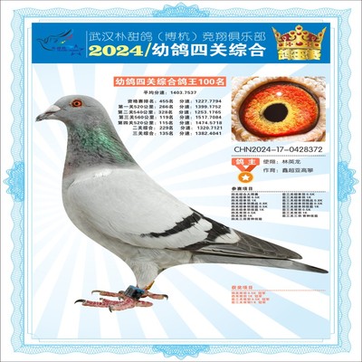 2024年武汉朴甜鸽[博杭]幼鸽四关综合鸽王100名