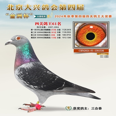 金洲杯四关综合鸽王61名 已结束