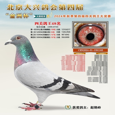 金洲杯四关综合鸽王48名 已结束