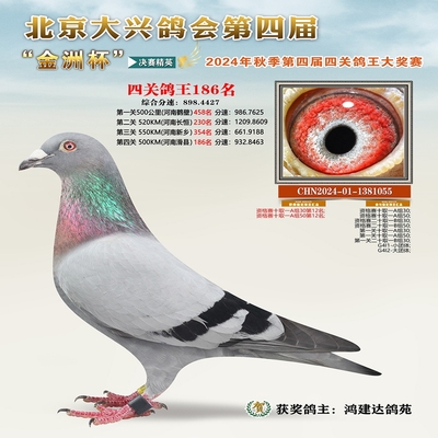 金洲杯四关综合鸽王186名 已结束