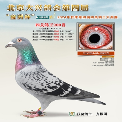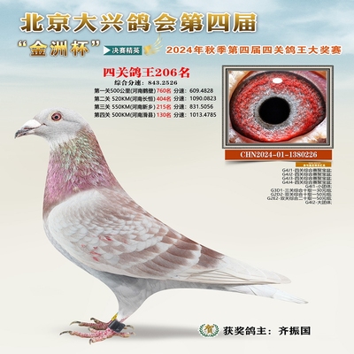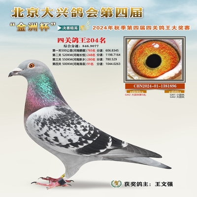 金洲杯四关综合鸽王204名 已结束