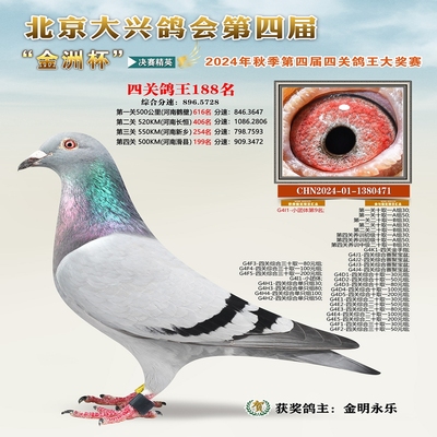 金洲杯四关综合鸽王188名 已结束