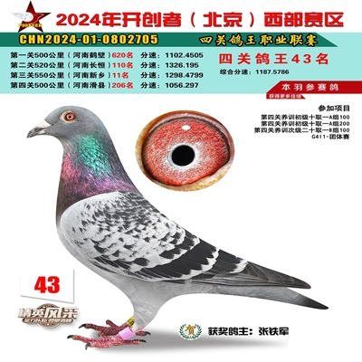 2024年开创者西部四关鸽王43名