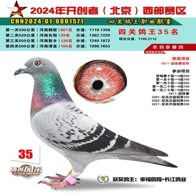 2024年开创者西部四关鸽王35名