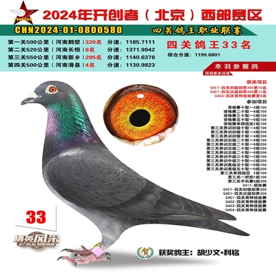 2024年开创者西部四关鸽王33名