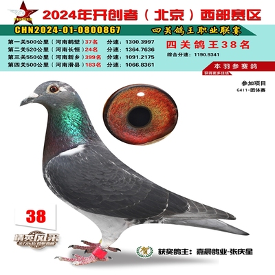 2024年开创者西部四关鸽王38名