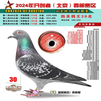 2024年开创者西部四关鸽王34名