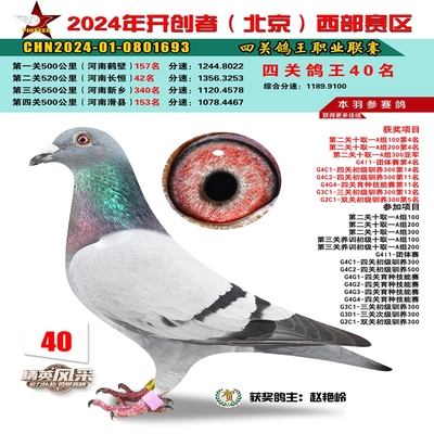 2024年开创者西部四关鸽王41名
