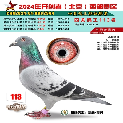 2024年开创者西部四关鸽王113名