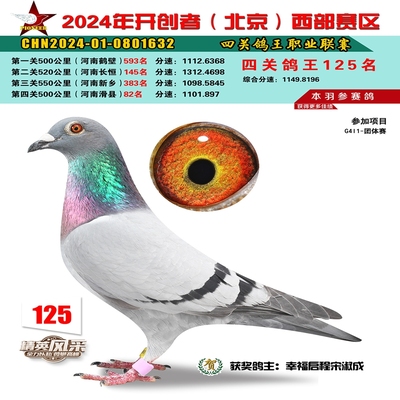2024年开创者西部四关鸽王125名