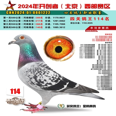 2024年开创者西部四关鸽王114名