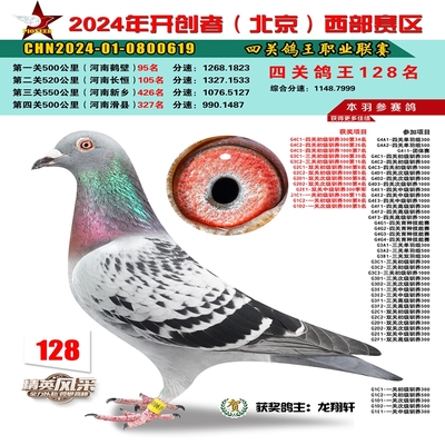2024年开创者西部四关鸽王128名