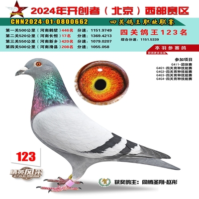 2024年开创者西部四关鸽王123名