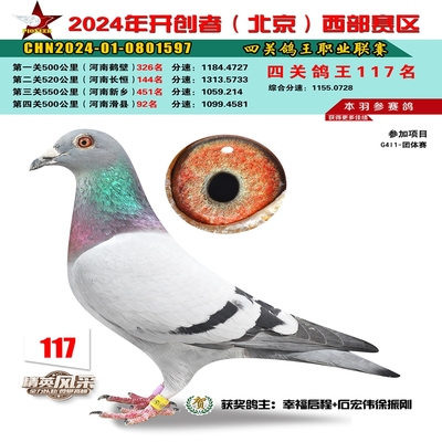 2024年开创者西部四关鸽王117名