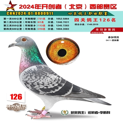 2024年开创者西部四关鸽王126名