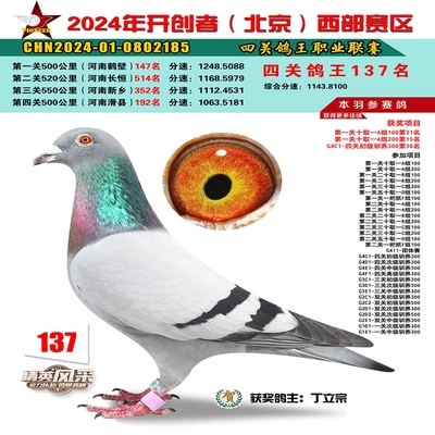 2024年开创者西部四关鸽王137名