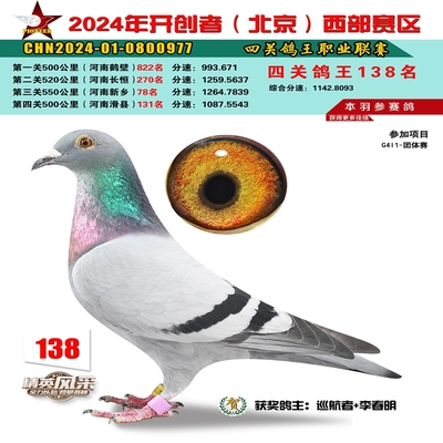 2024年开创者西部四关鸽王138名