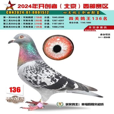 2024年开创者西部四关鸽王136名