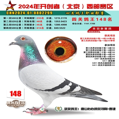 2024年开创者西部四关鸽王148名