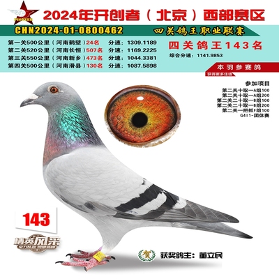 2024年开创者西部四关鸽王143名