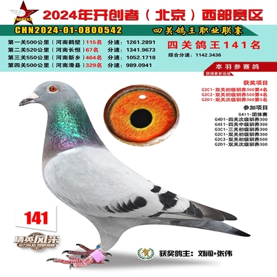2024年开创者西部四关鸽王142名