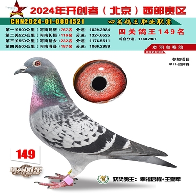 2024年开创者西部四关鸽王149名
