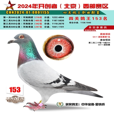 2024年开创者西部四关鸽王153名
