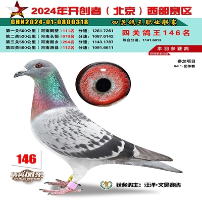 2024年开创者西部四关鸽王146名