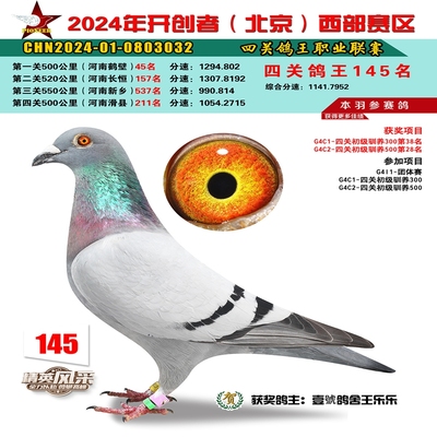2024年开创者西部四关鸽王145名