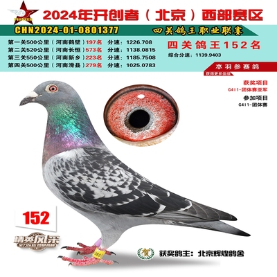 2024年开创者西部四关鸽王152名