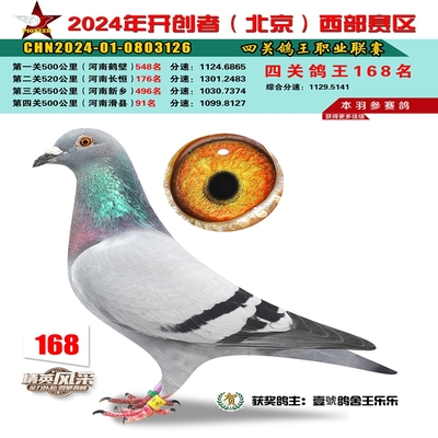 2024年开创者西部四关鸽王169名