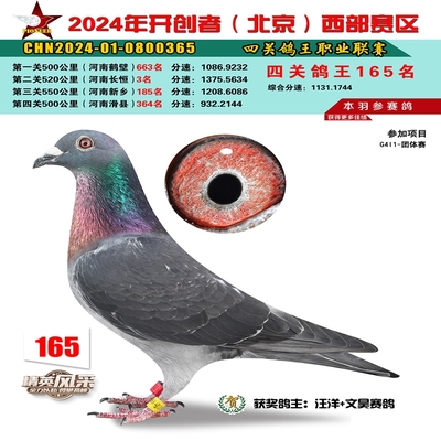 2024年开创者西部四关鸽王165名
