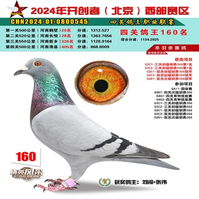 2024年开创者西部四关鸽王160名