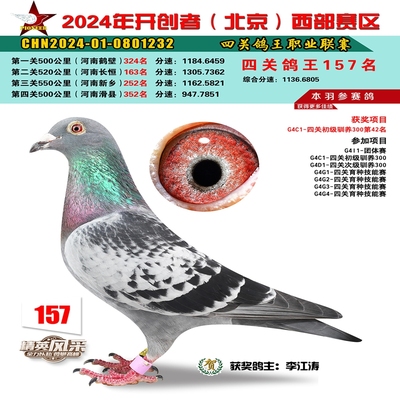 2024年开创者西部四关鸽王157名