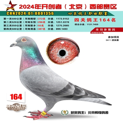 2024年开创者西部四关鸽王164名