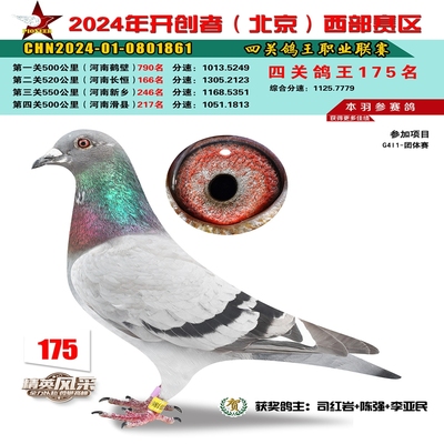 2024年开创者西部四关鸽王175名